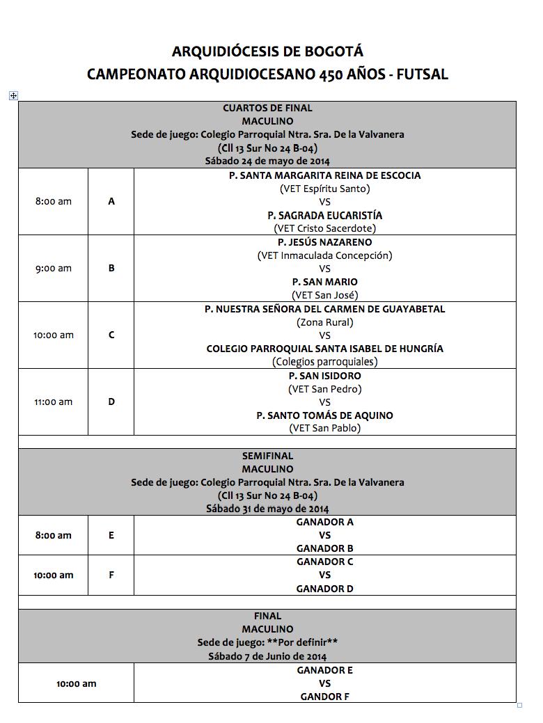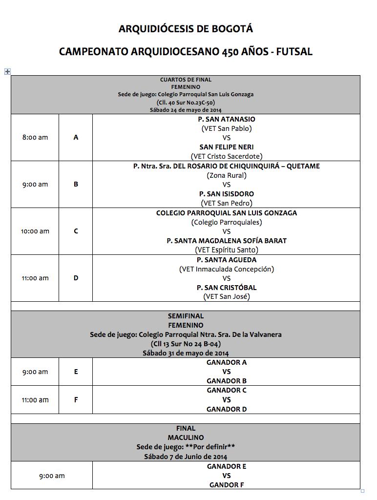 Centro de información Yo quiero Noticias Boletines Eventos Artículos Canonización Mensajes del Señor Cardenal Cartas pastorales Homilías Mensajes La voz del pastor Documentos del Vaticano NoticiasCAMPEONATO ARQUIDIOCESANO 450 AÑOS - FUTSAL20 de Mayo de 2014El próximo sábado 24 de mayo, en los Colegios Parroquiales Nuestra Señora de la Valvanera y San Luis Gonzaga, retomaremos el campeonato de Futsal con ocasión de los 450… Guillermo Rodríguez Parroquia Madre Laura Like 0 Dislike 0 Noticias relacionadas Ordenaciones en la Catedral Primada de Colombia Tiempo de preparación para la Navidad Video del papa - noviembre de 2025