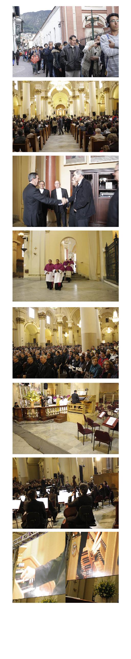 Con la asistencia de las ministras de Cultura, Mariana Garcés Córdoba y de Comercio, Industria y Turismo, María Claudia Lacouture Pinedo, el Cardenal Rubén Salazar Gómez, los miembros del Capítulo Metropolitano de la Catedral, los obispos que toman parte en la CI Asamblea de la Conferencia Episcopal de Colombia, miembros del Gobierno y público en general se llevó a cabo el concierto inaugural por la restauración del órgano de la Catedral de Bogotá.