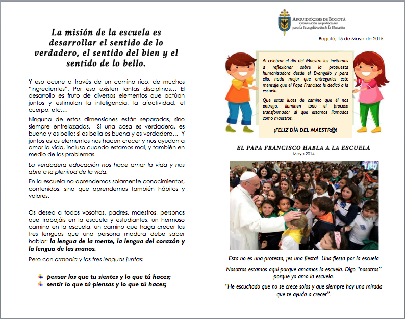 Centro de información Yo quiero Noticias Boletines Eventos Artículos Canonización Mensajes del Señor Cardenal Cartas pastorales Homilías Mensajes La voz del pastor Documentos del Vaticano Noticias¡Feliz día del maestro!15 de Mayo de 2015Al celebrar el día del Maestro los invitamos a reflexionar sobre la propuesta humanizadora desde el Evangelio y para ello, nada mejor que entregarles este mensaje que el… Like 0 Dislike 0 Noticias relacionadas Ordenaciones en la Catedral Primada de Colombia Tiempo de preparación para la Navidad Video del papa - noviembre de 2025