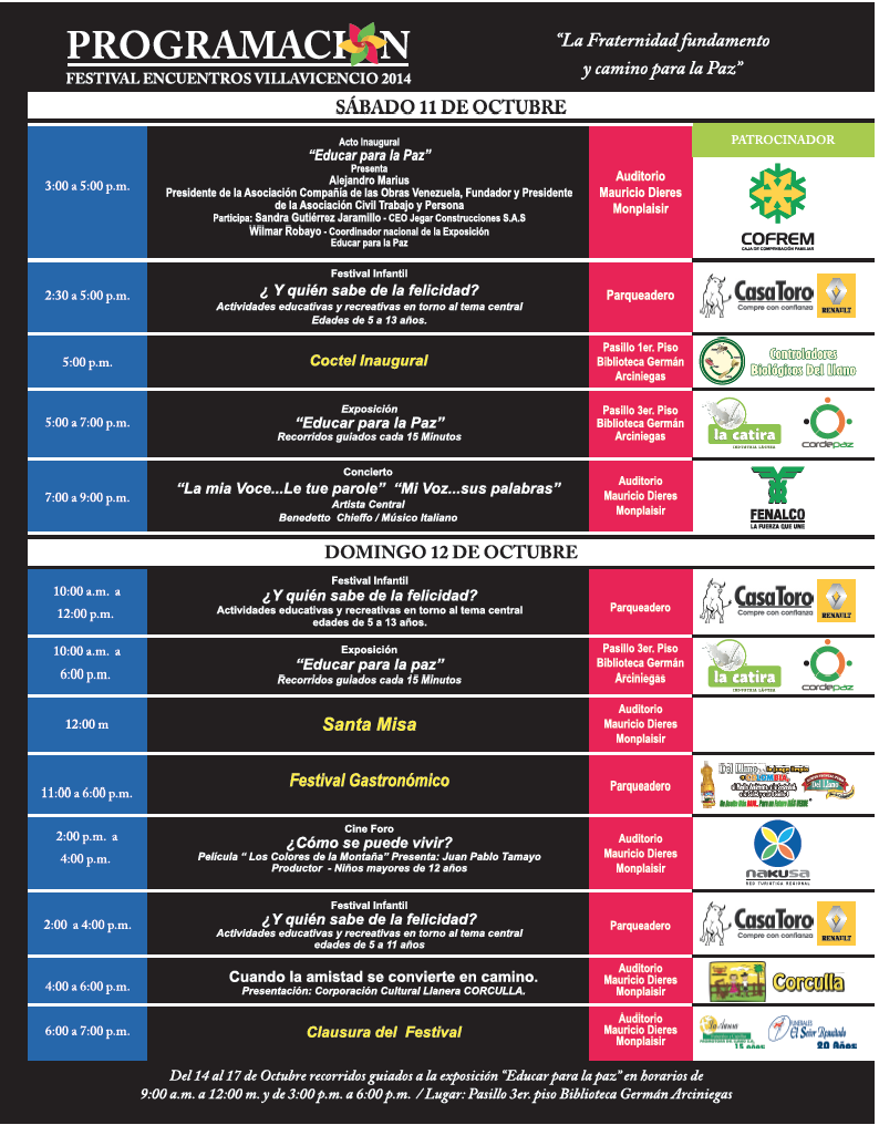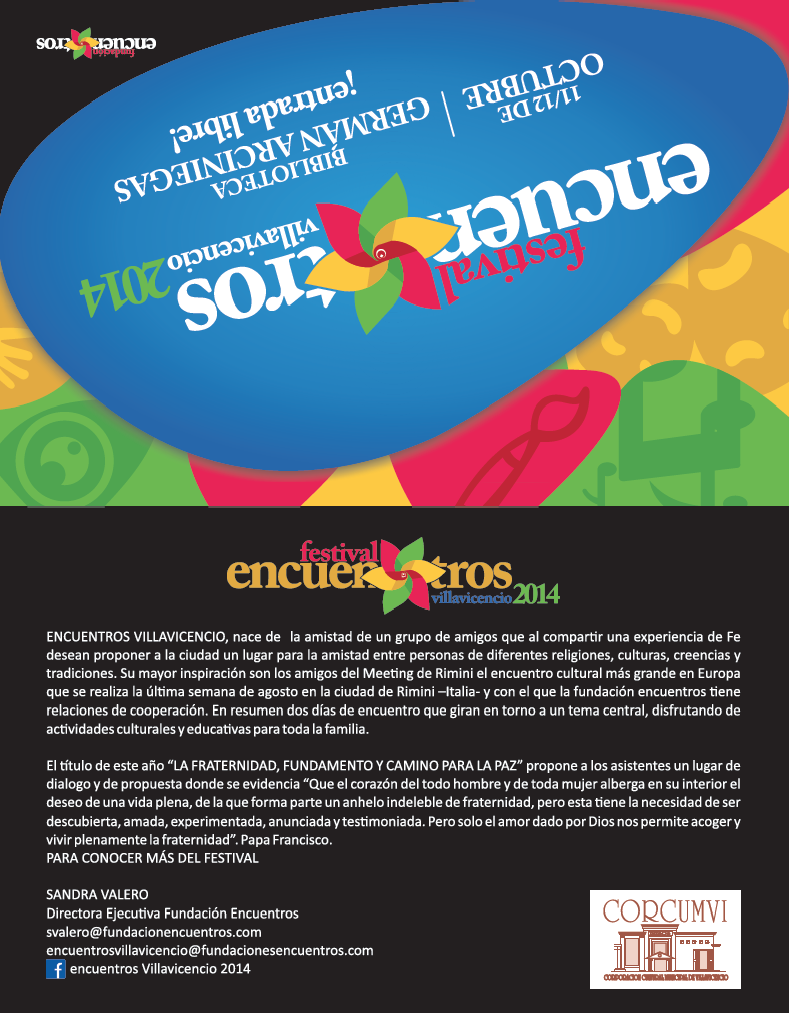 Centro de información Yo quiero Noticias Boletines Eventos Artículos Canonización Mensajes del Señor Cardenal Cartas pastorales Homilías Mensajes La voz del pastor Documentos del Vaticano NoticiasFestival de encuentros villavicencio 2014¡Entrada libre!3 de Octubre de 2014 Like 0 Dislike 0 Noticias relacionadas Ordenaciones en la Catedral Primada de Colombia Tiempo de preparación para la Navidad Video del papa - noviembre de 2025