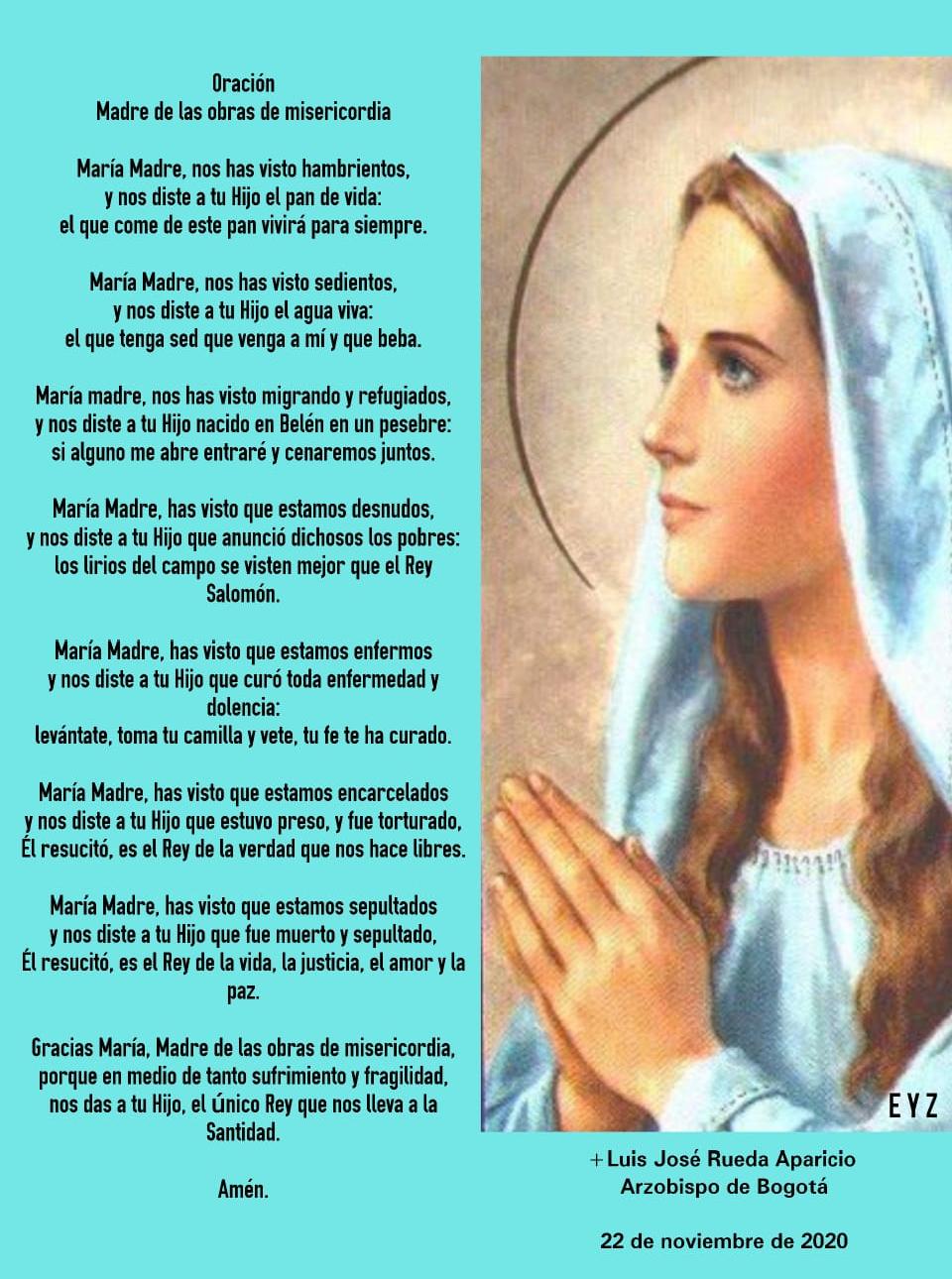 Centro de información Yo quiero Noticias Oraciones Boletines Eventos Artículos Canonización Mensajes del Señor Cardenal Cartas pastorales Homilías Mensajes La voz del pastor Documentos del Vaticano NoticiasOración: Madre de las obras de misericordia24 de Noviembre de 2020 Like 0 Dislike 0 Noticias relacionadas Ordenaciones en la Catedral Primada de Colombia Tiempo de preparación para la Navidad Video del papa - noviembre de 2025