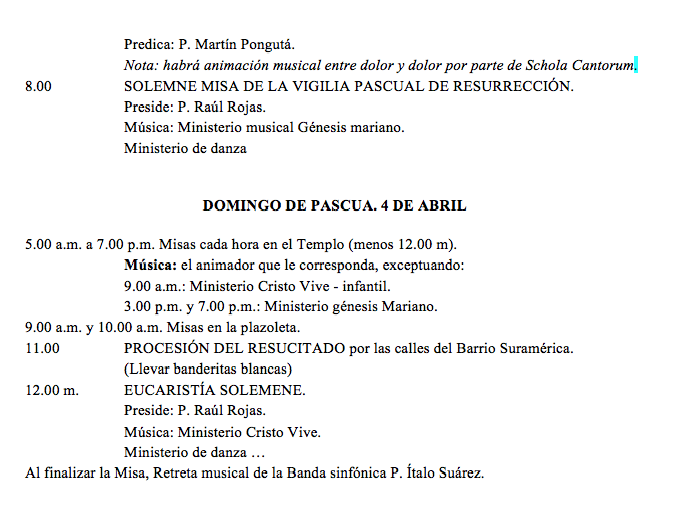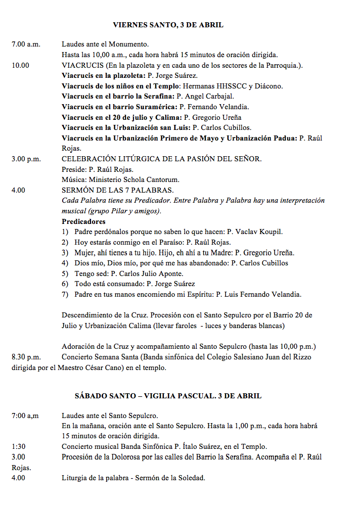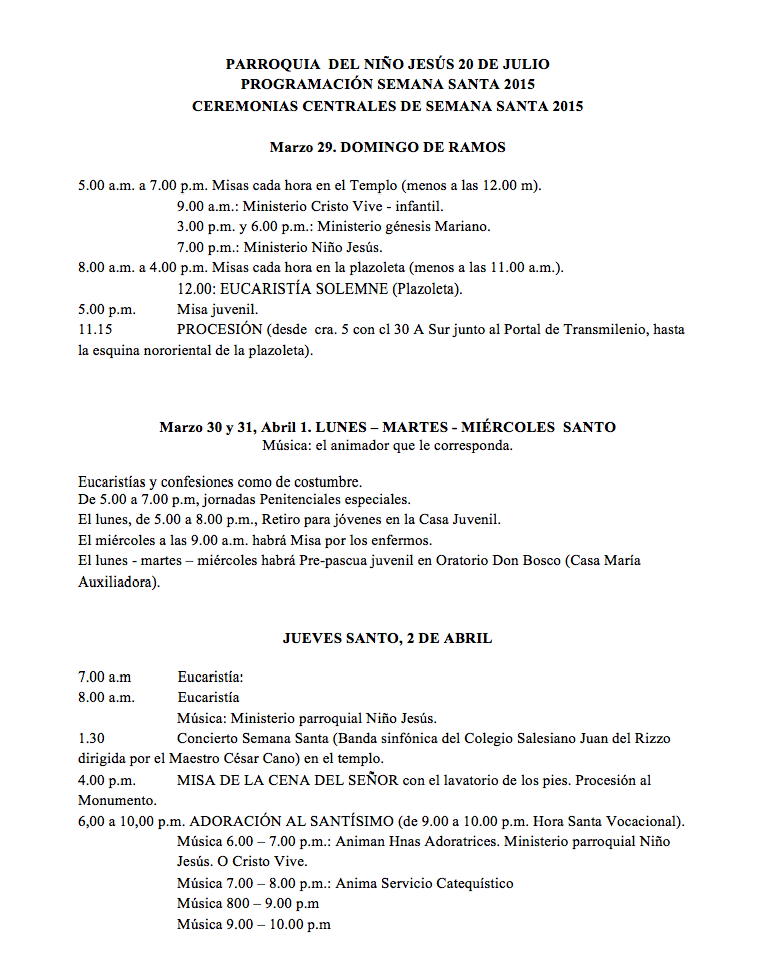 PROGRAMA PARA LA SEMANA SANTA 2015