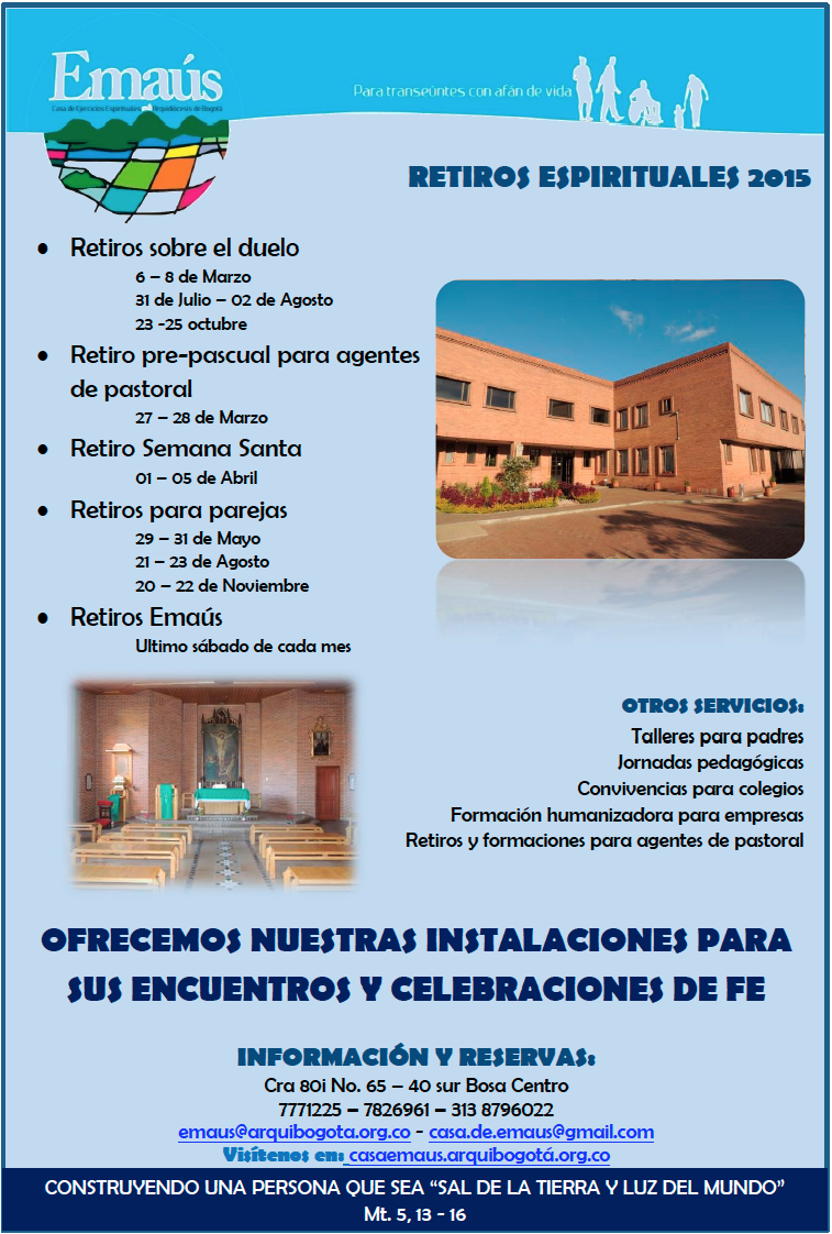Centro de información Yo quiero Noticias Boletines Eventos Artículos Canonización Mensajes del Señor Cardenal Cartas pastorales Homilías Mensajes La voz del pastor Documentos del Vaticano NoticiasRetiros espirituales 201522 de Febrero de 2015 Like 0 Dislike 0 Noticias relacionadas Ordenaciones en la Catedral Primada de Colombia Tiempo de preparación para la Navidad Video del papa - noviembre de 2025